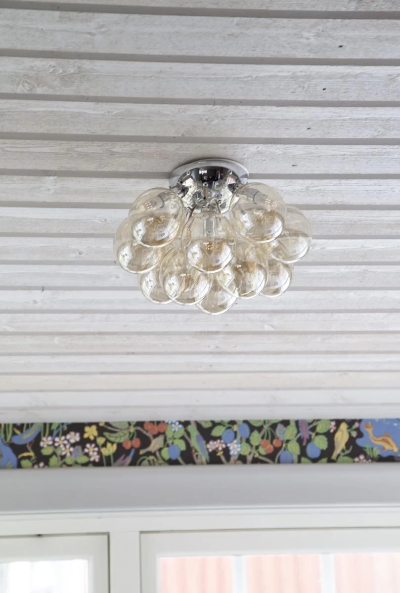 Die stilvolle Leuchte im Stil einer Wolke besteht aus mehreren klaren Glasperlen in der Farbgebung Amber, welche für eine angenehme Atmosphäre sorgen und Ihrer Einrichtung ein modernes Ambiente verleihen. Zum Strahlen benötigt die Gross Deckenleuchte drei G9-Leuchtmittel mit maximal 4Watt. So haben Sie die Möglichkeit mit den passenden Leuchtmitteln die Lichtverhältnisse in Ihrem Zuhause ganz Ihren Wünschen und Bedürfnissen nach anzupassen.