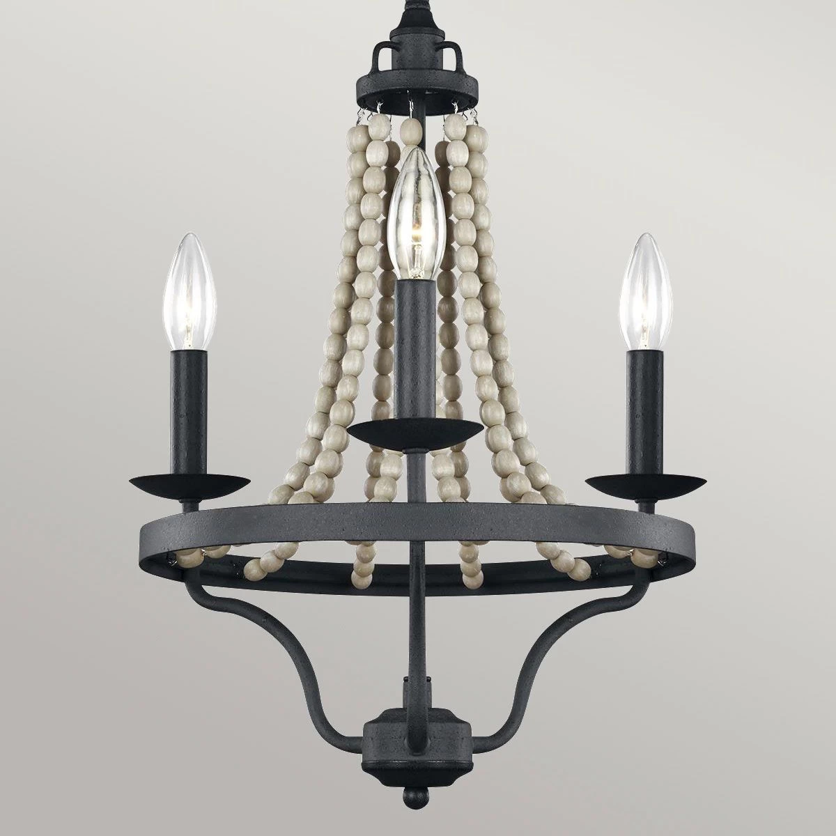 Elstead Nori Kronleuchter Dunkel Verwittertes Zink Mit Treibholzgrau 3xE14 IP20 375mm Dimmbar