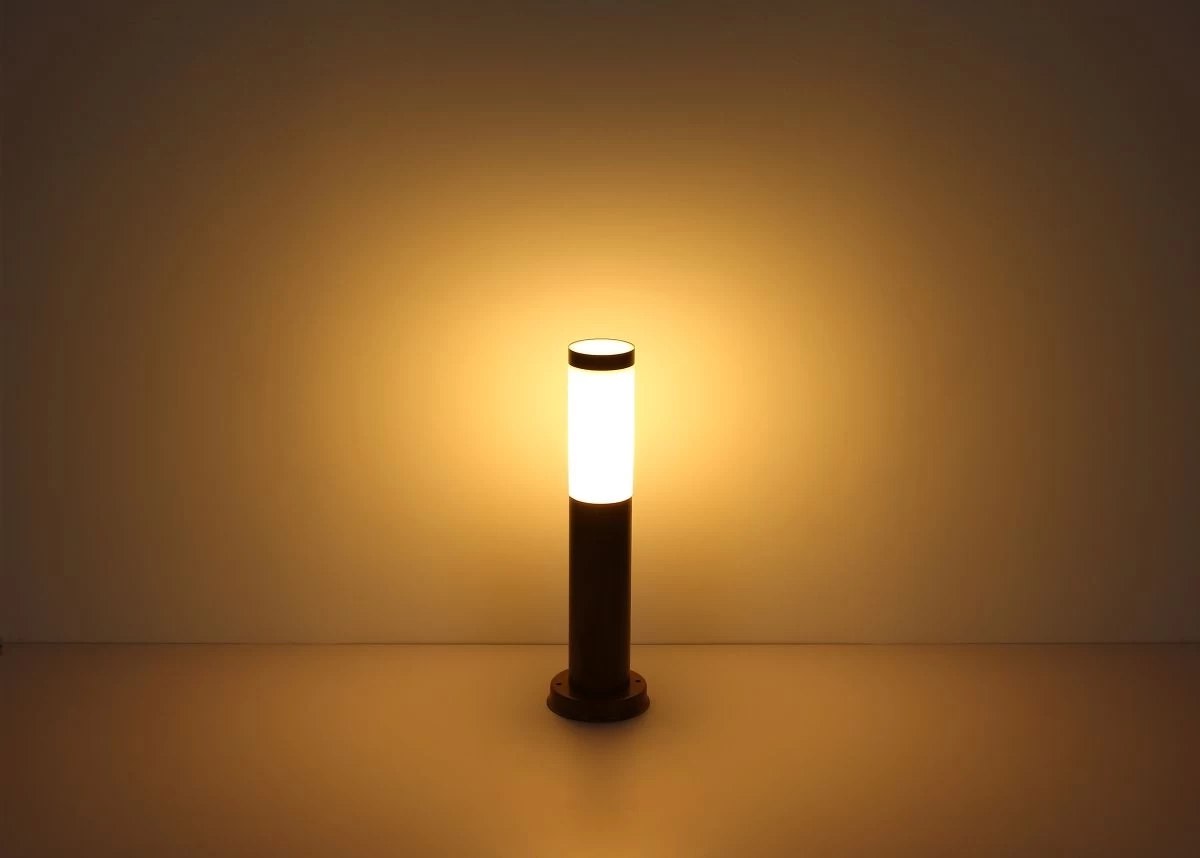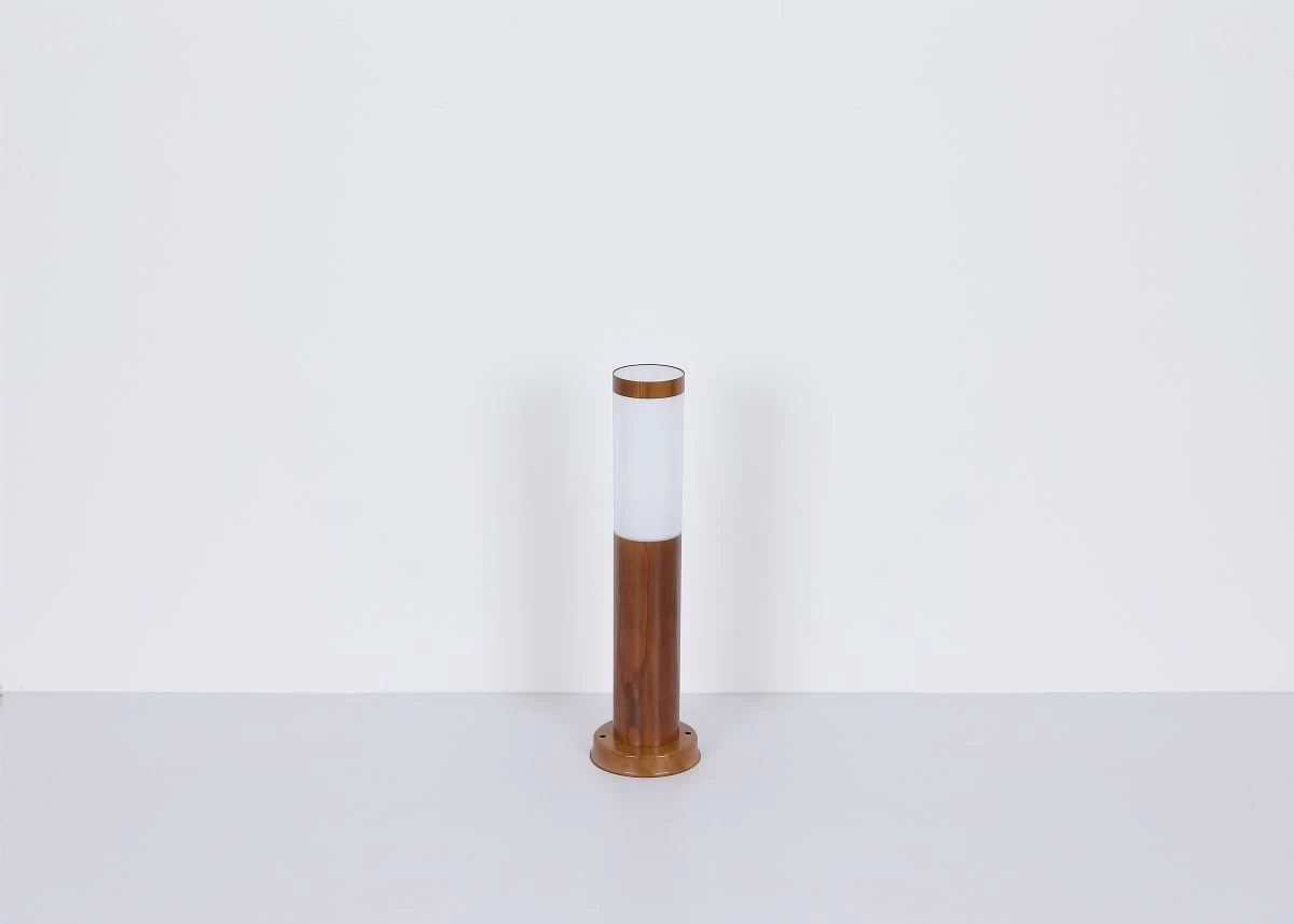 Diese 450mm große Außensockelleuchte ziert eine moderne Holzoptik. Der Zylinder, bestehend aus holzfarben gestyltem Edelstahl und einem opalen Kunststoffschirm, wird von einem Sockel getragen, welchen man problemlos auf ebener Fläche montieren kann. Zusätzlich verfügt die Leuchte über einen Sensor, welcher bei Bewegung reagiert. Unter dem opalen Schirm befindet sich eine E27 Fassung, welche Sie mit Ihrem passenden Leuchtmittel bestücken können. Nutzen Sie die Chance Ihre ideale Lichtfarbe und Helligkeit selbst zu bestimmen.