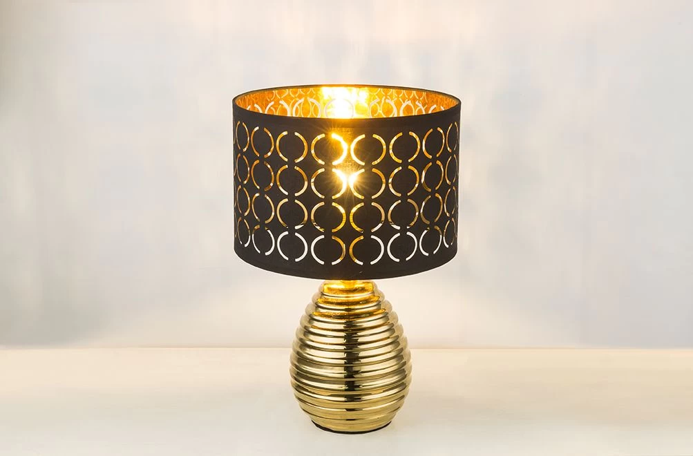 Globo Mirauea Tischleuchte Gold, Schwarz E27 Mit Schalter 25x38cm