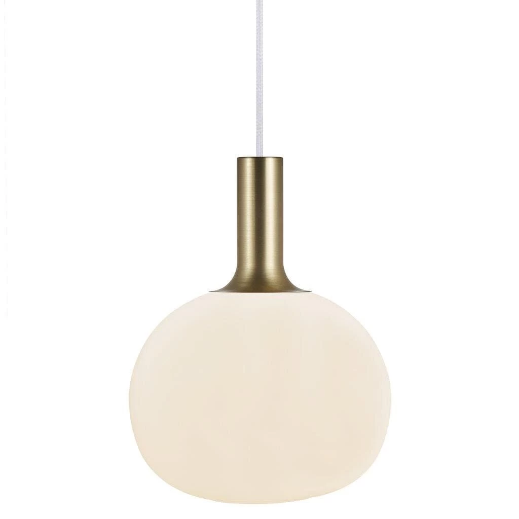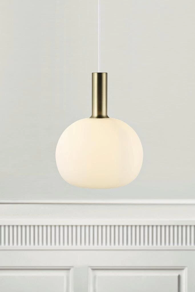 Die dekorative Pendelleuchte Alton 25 verleiht Ihrem Wohnbereich einen individuellen Touch. Der mundgeblasene weiße Opalglasschirm sorgt für eine weiche und diffuse Beleuchtung. Dem Lieferumfang mitinbegriffen sind 2 auswechselbare Lampenaufsätze, die in Kombination mit dem Glas für einen minimalistischen Look sorgen. Ein Lampenaufsatz ist aus matt schwarzem Metall und der andere aus gebürstetem Messing. Nutzen Sie die Gelegenheit und gestalten Sie die Hauptbeleuchtung für Ihren Wohnbereich in Ihrer gewünschten Optik – entweder warm modern (messing) oder klassisch puristisch (schwarz). Aufgrund des Herstellungsverfahrens „mundgeblasen“ erhalten Sie einen individuell handgefertigten Schirm, welcher kleine Lufteinschlüsse aufweisen und in der Glasstärke variieren kann. Ein Glasschirm mit einem lebendigen Erscheinungsbild und einem einzigartigen Charakter.
