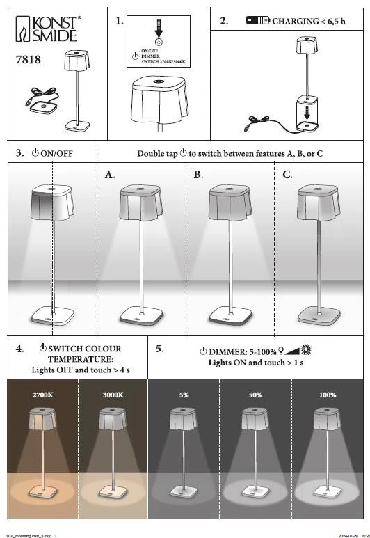 Wählen Sie Ihr perfektes Licht für jede Situation. Nice ist mittels Knopf oberhalb des Leuchtenschirmes dimmbar. Schalten Sie die Tischleuchte mit einem kurzen Drücken des Knopfes ein und halten Sie den Knopf gedrückt um Ihr Lichtprodukt aufzuhellen und erneut gedrückt halten um abzudunkeln. Ein weiterer Clou der LED-Lampe ist die änderbare Lichtfarbe von 2700K auf 3000K. Hierzu einfach den Knopf beim Einschalten etwas länger gedrückt halten und mit einer weiteren kurzen Betätigung des Knopfes die Lichtfarbe wechseln. Bei erneutem längeren Drücken schalten Sie die Tischleuchte wieder aus. Die Tischleuchte verfügt außerdem über verschiedene LED – unterhalb des Leuchtenschirmes und an den Seiten. Sie haben die Option 3 unterschiedliche Beleuchtungsmodi einzustellen – Licht von unterhalb und seitlich, nur Licht von unterhalb, nur Licht von den Seiten.