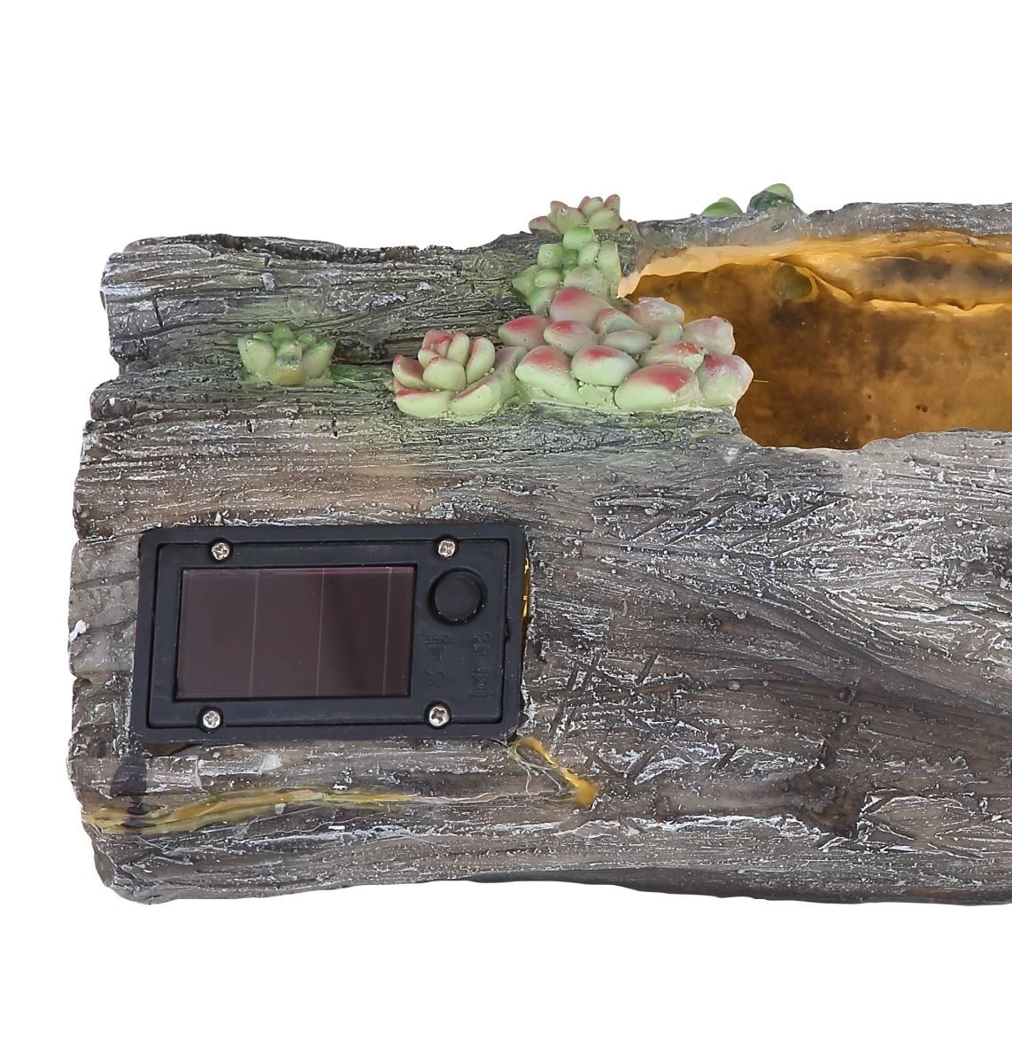 Da der 44,3×17,3×13,5cm große Blumentopf in Form eines Holzstammes daher kommt, wirkt diese Solarleuchte bereits am Tage besonders dekorativ.