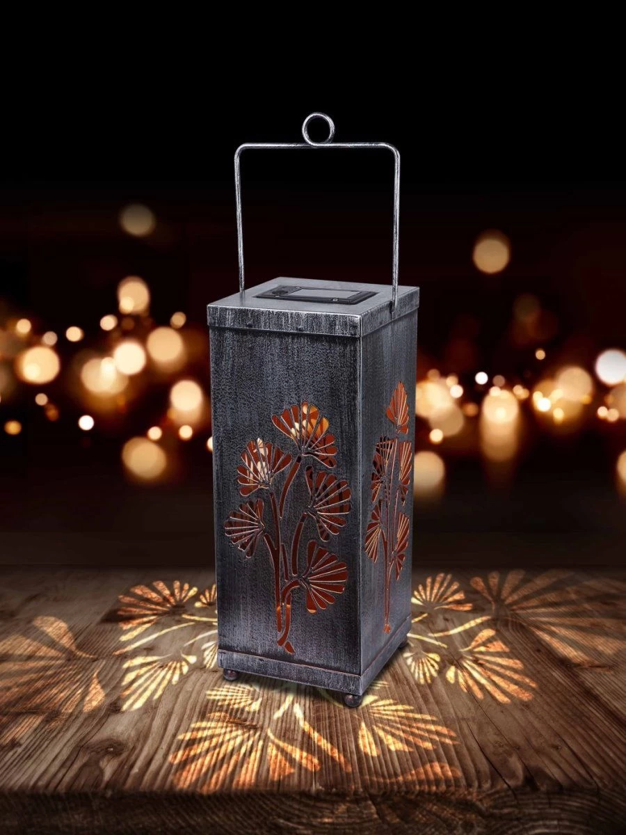 LED Solar Laterne Dekorstanzung Silber Antik 268mm Von Globo