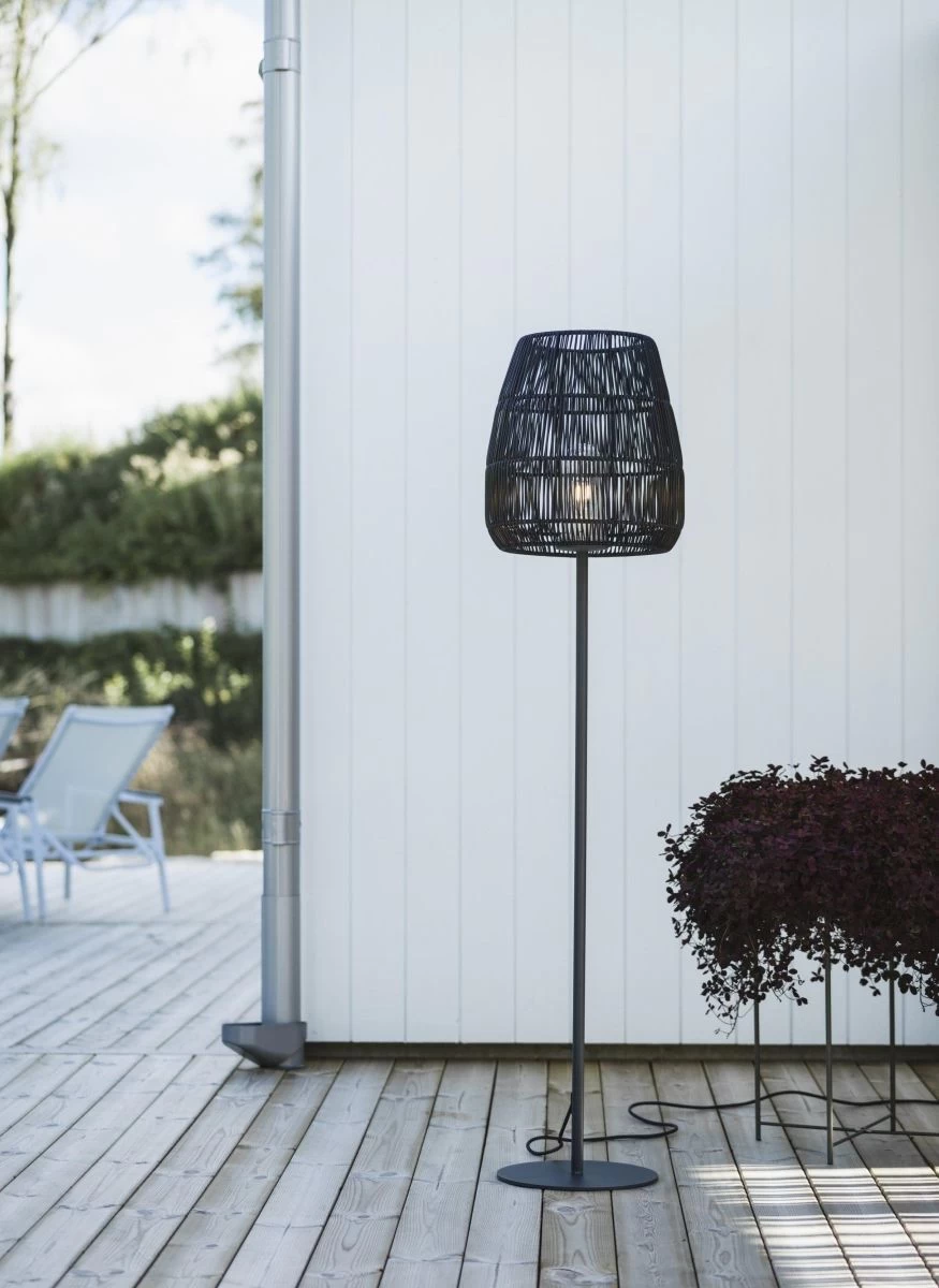 PR Home Agnar Saigon Terrassen Rattan Stehleuchte Grau Beige IP44 154cm E27