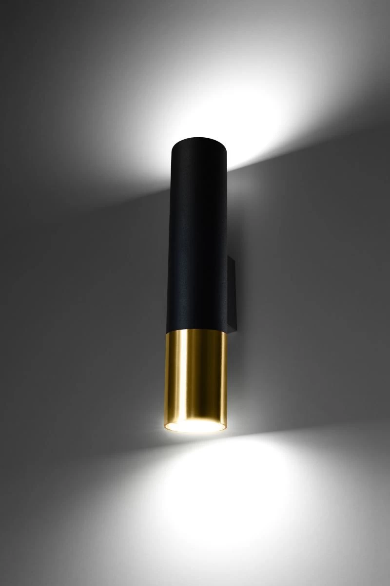 Sollux Loopez Wandlampe Schwarz, Golden 2x GU10 Dimmbar 6x8x29cm