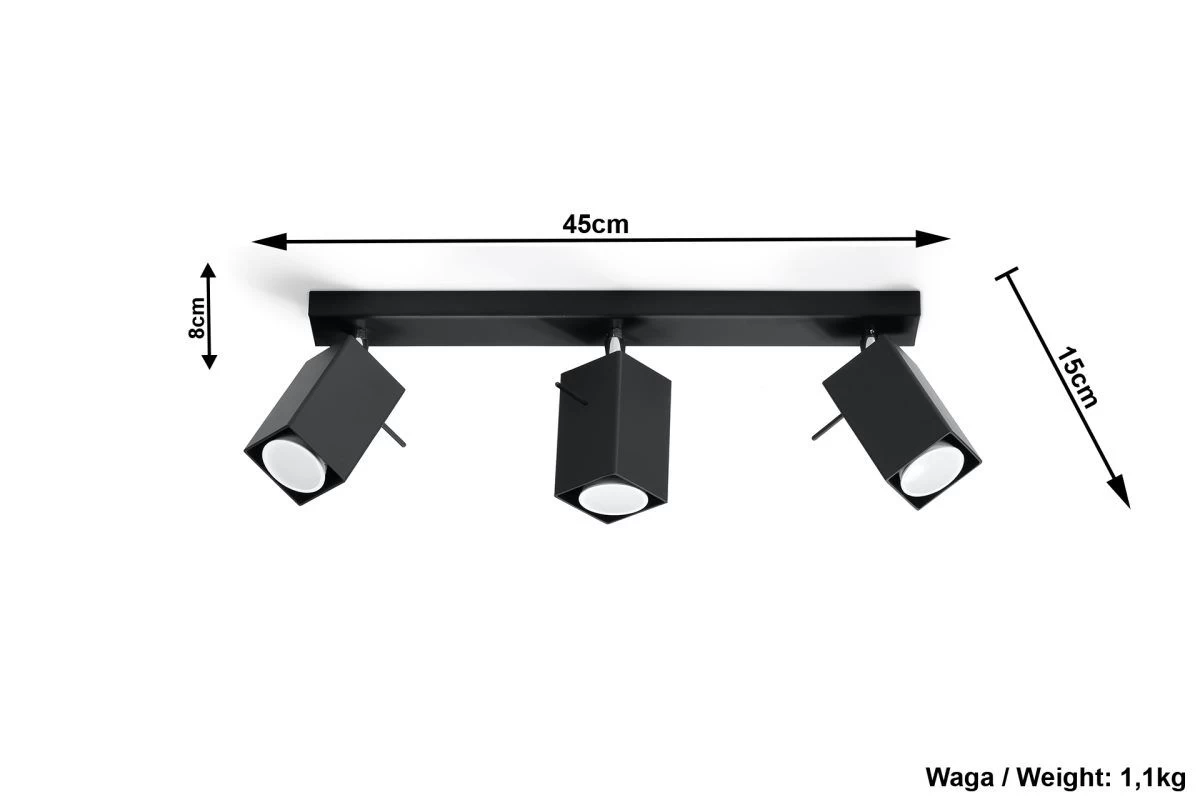 Sollux MERIDA Moderner Deckenstrahler Eckig Schwarz 3-flg. GU10